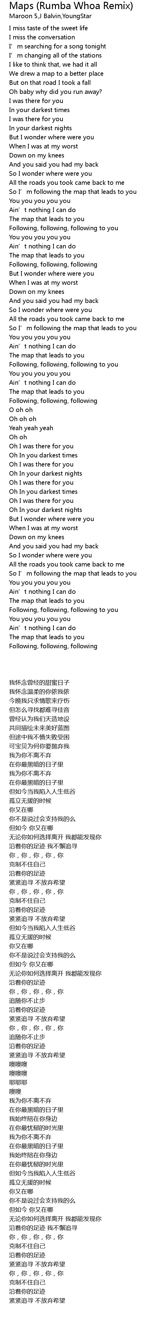 | [02:20.400] | So I' m following the map that leads to you |