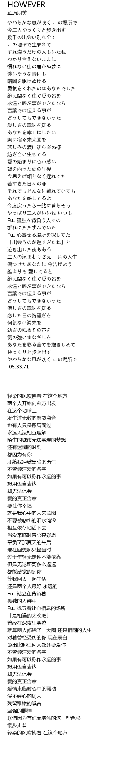 | [03:27.33] | Fu…心寄せる場所を探してた |