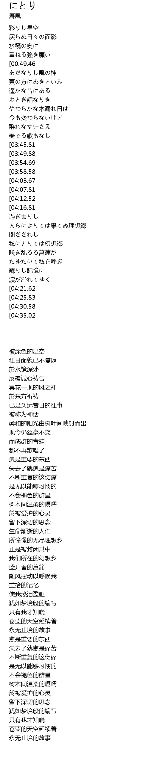 | [00:41.06] | あだなりし風の神 |