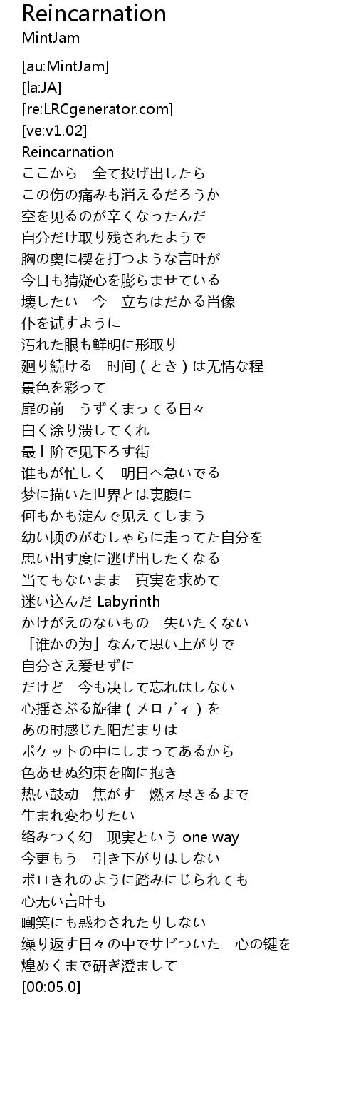 | [00:01.40] | Reincarnation |
