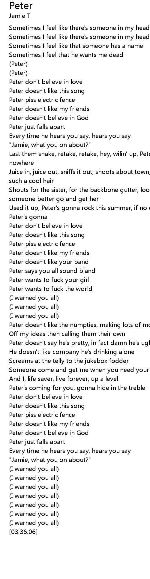 [02:37.29] Peter's coming for you, gonna hide in the treble