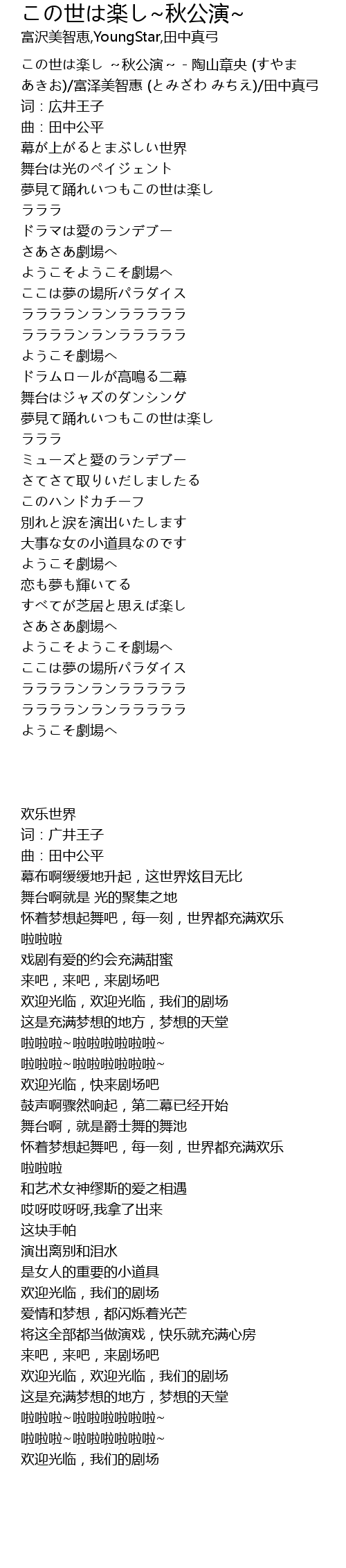 | [00:40.410] | 夢見て踊れいつもこの世は楽し |