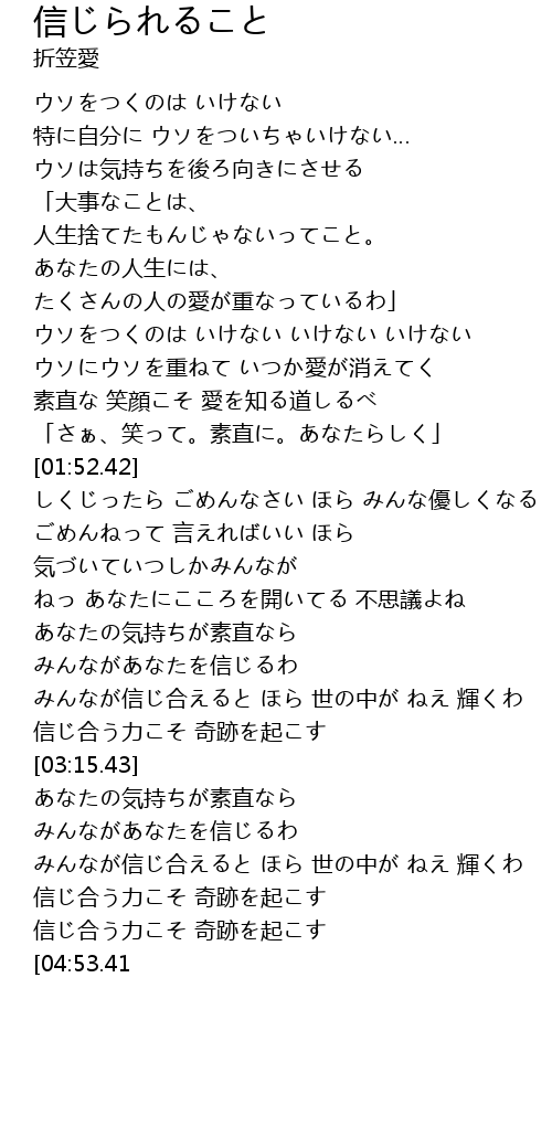 | [02:36.57] | あなたの気持ちが素直なら みんながあなたを信じるわ |
