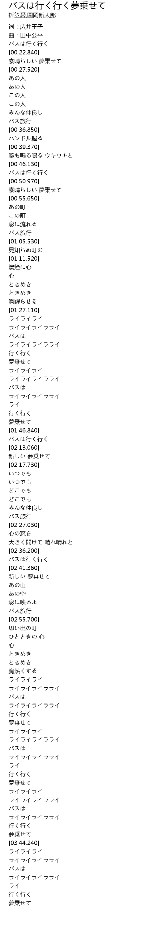 | [02:09.980] | バスは行く行く |