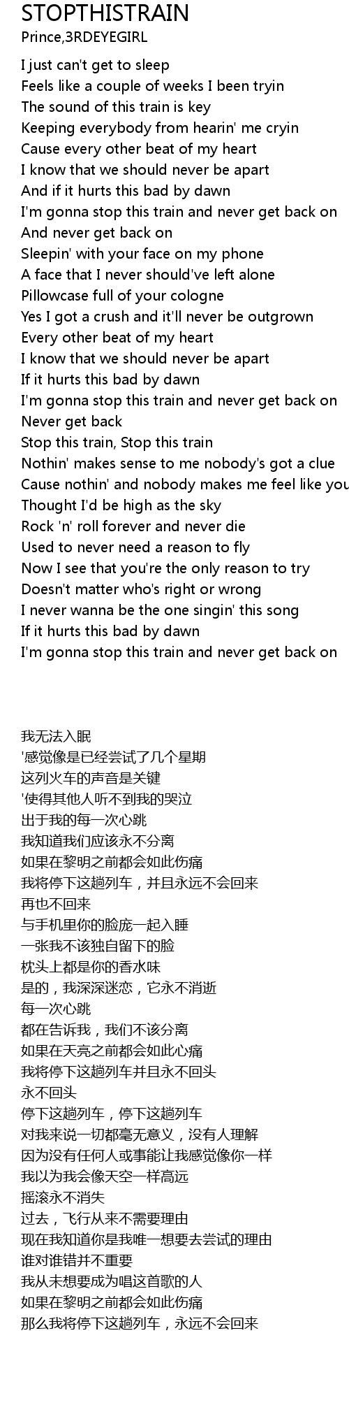 Stop this train, Stop this train |