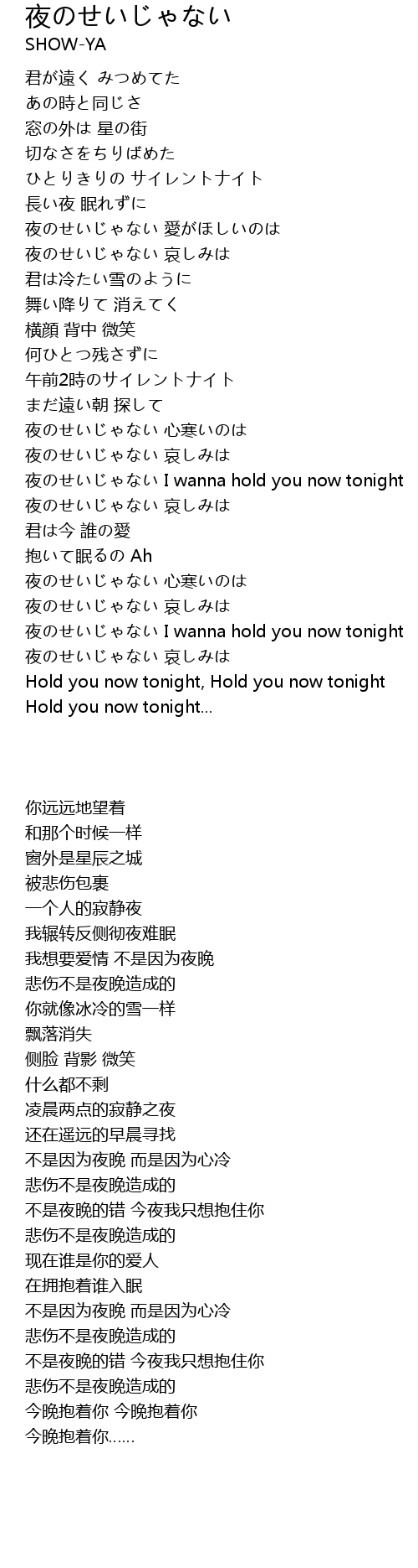 | [03:33.593] | 夜のせいじゃない I wanna hold you now tonight |