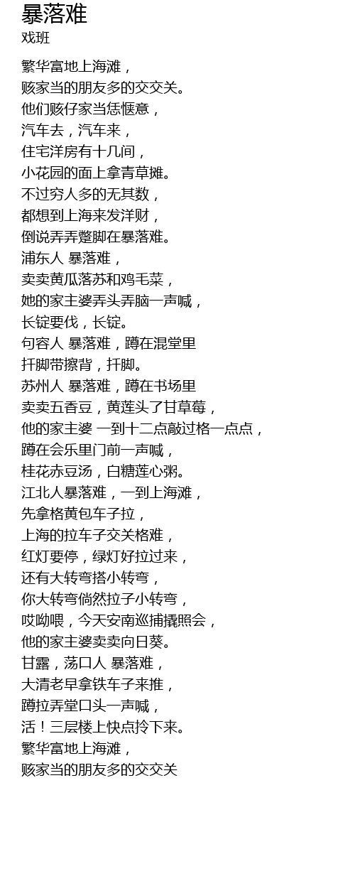| 江北人暴落难,一到上海滩, | |