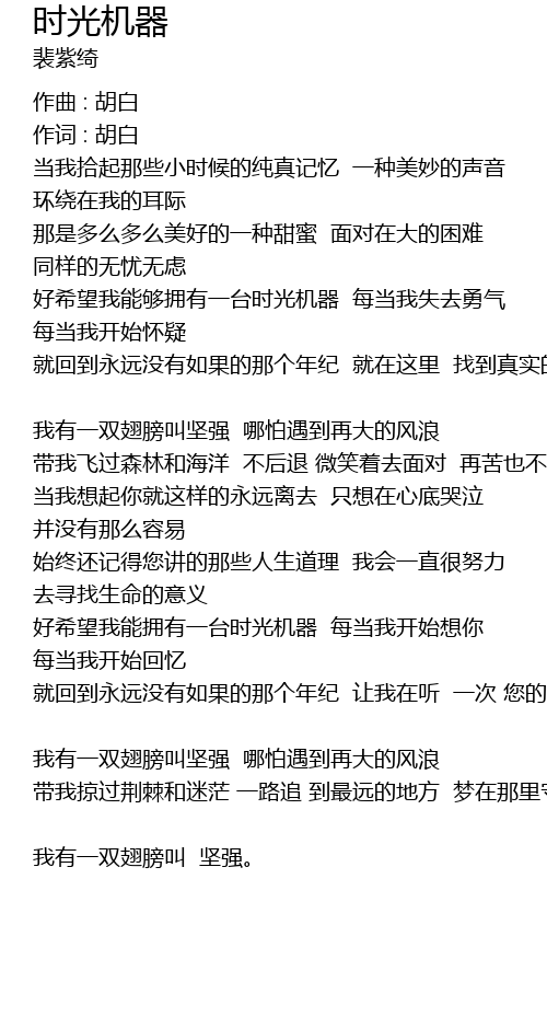 | 好希望我能够拥有一台时光机器 每当我失去勇气 每当我开始怀疑 | |