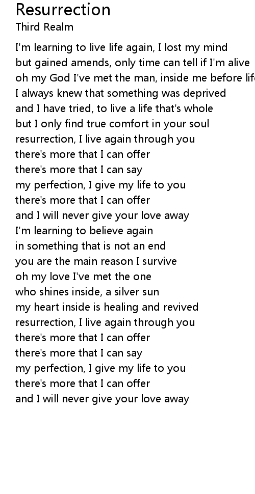 resurrection, I live again through you |