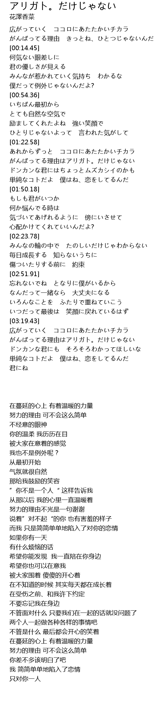 | [03:54.48] | がんばってる理由はアリガト。だけじゃない |