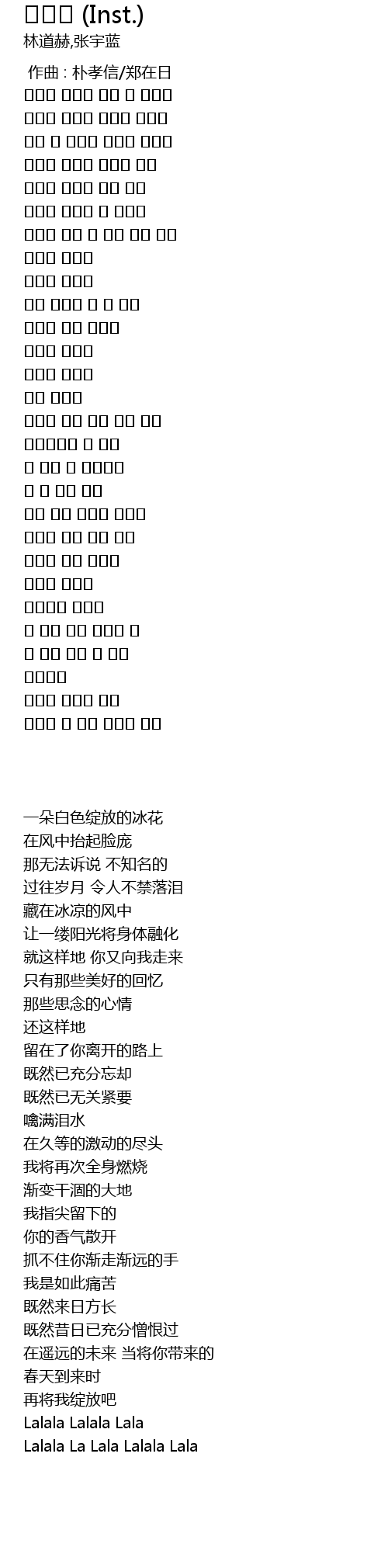 | [00:21.44] | 하얗게 피어난 얼음 꽃 하나가 |