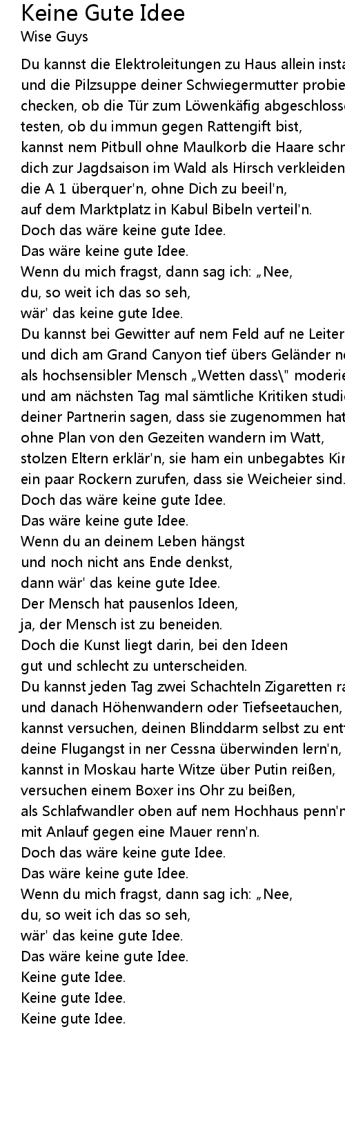 | Wenn du mich fragst, dann sag ich: Nee, | |