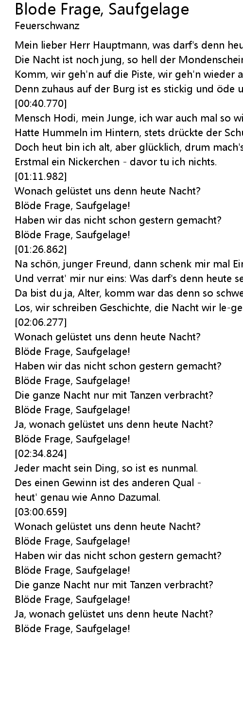 | [02:09.981] | Bl de Frage, Saufgelage! |