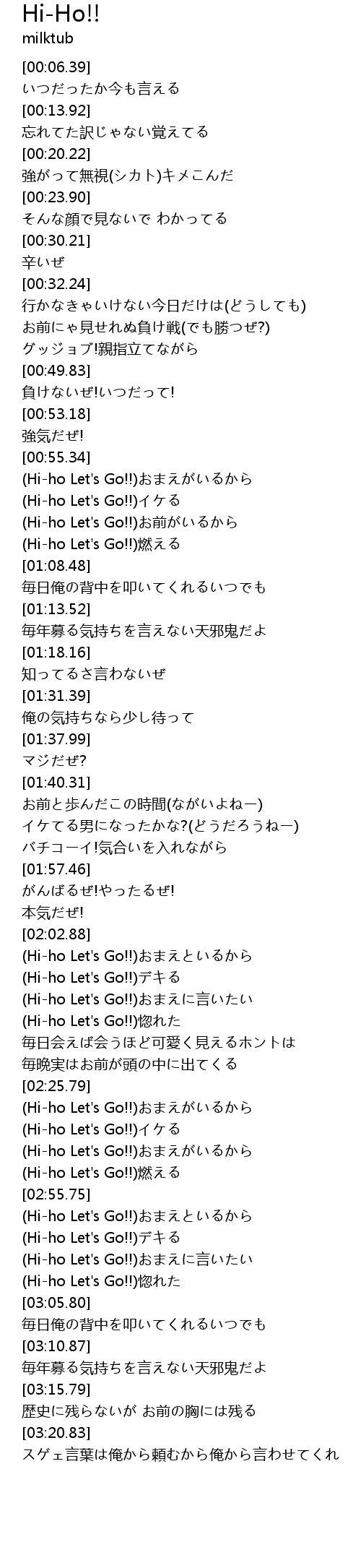 | [03:04.12] | Hiho Let' s Go!! hū |