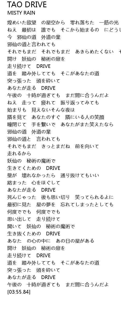 | [03:46.40] | zǒu DRIVE |