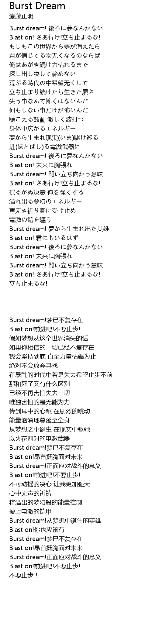 | [01:31.70] | Burst dream! dòu lì xiàng yì wèi |