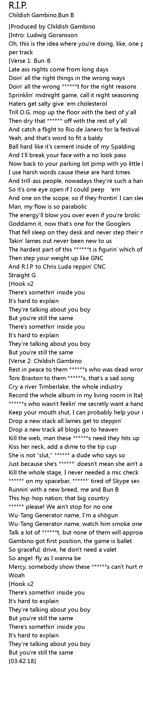 | [01:57.76] | Rest in peace to them ******s who was dead wrong |