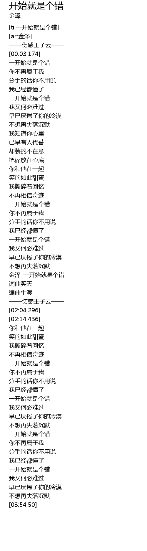| [01:51.792] | jin ze yi kai shi jiu shi ge cuo |