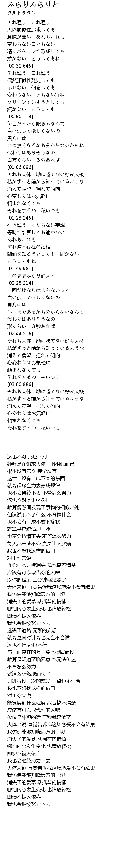 | [02:52.022] | 消えて羨望 揺れて傾向 |