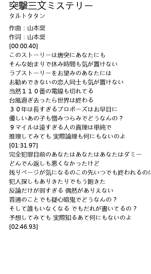 | [02:34.26] | そして誰もいなくなる でもだれが書いてるの? |