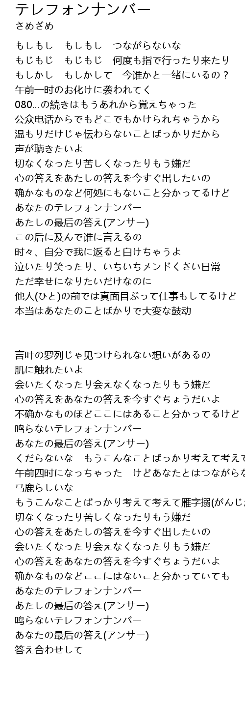 | 午前四时になっちゃった けどあなたとはつながらないまま | |