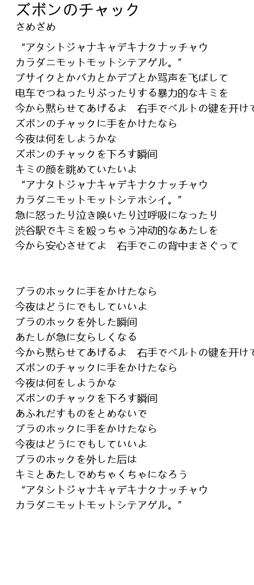 | 今から安心させてよ 右手でこの背中まさぐって | |