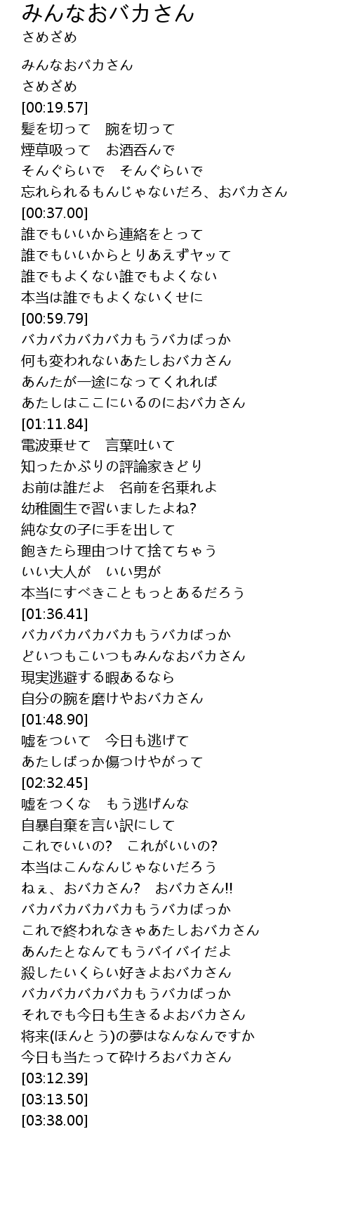 | [01:00.11] | バカバカバカバカもうバカばっか |
