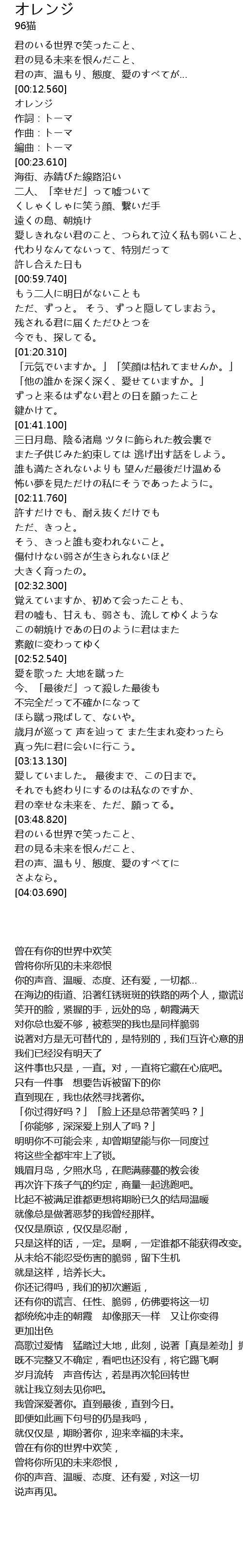 | [03:42.520] | 君の幸せな未来を、ただ、願ってる。 |