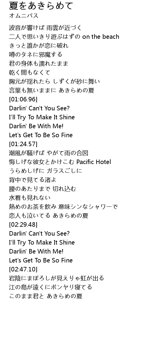 | [00:59.65] | 言葉も無いままに あきらめの夏 |