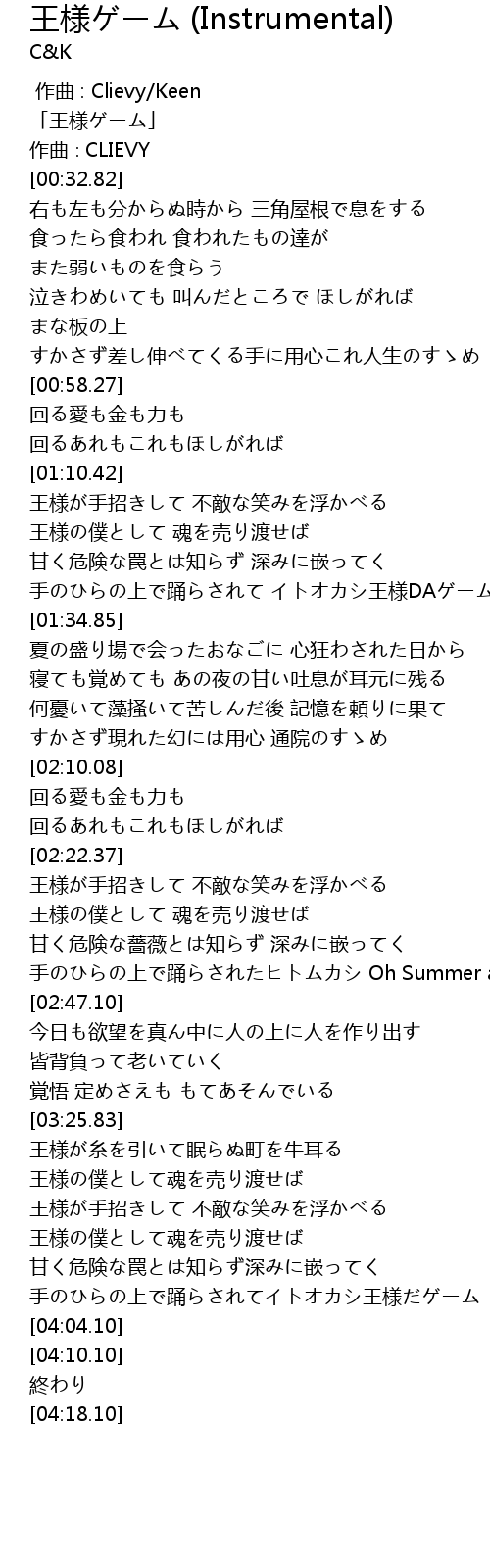 | [00:00.82] | 「王様ゲーム」 |