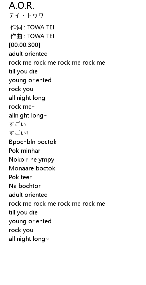 | [02:31.348] | rock me rock me rock me rock me |