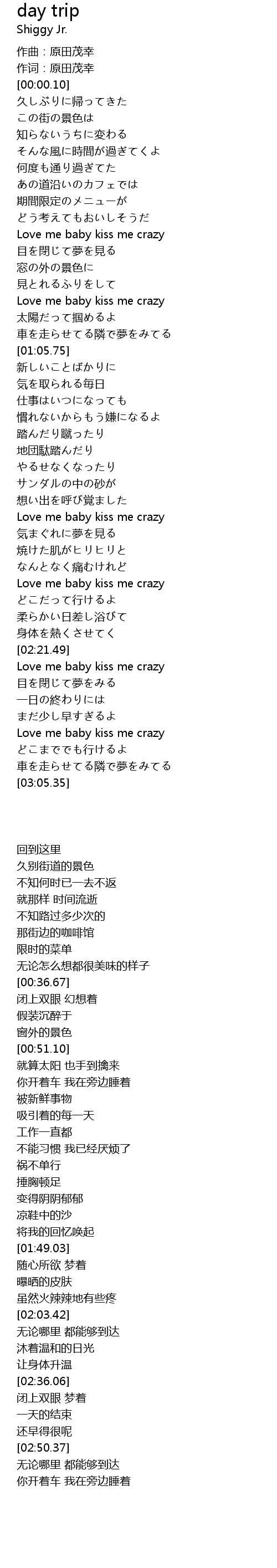 | [02:36.06] | Love me baby kiss me crazy |