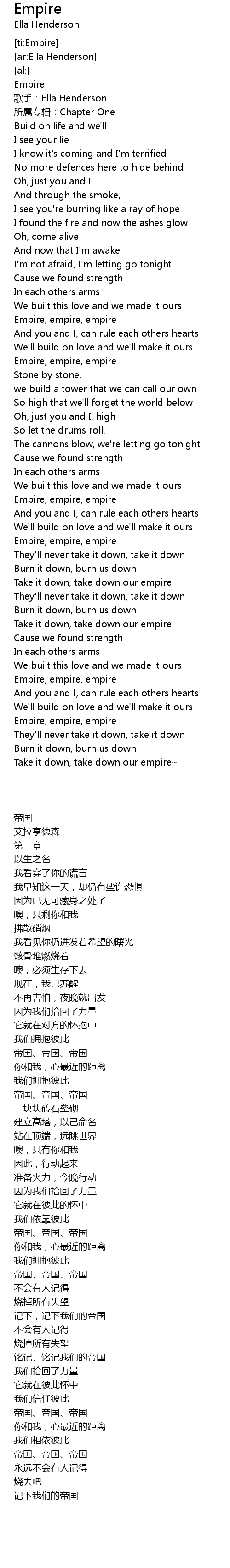 | [02:31.97] | Empire, empire, empire |