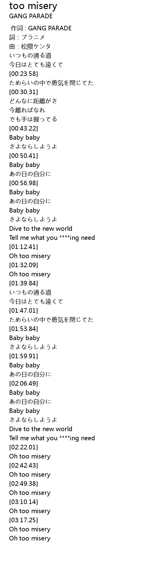 | [02:36.19] | Oh too misery |