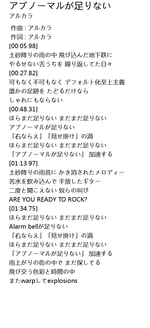 | [00:54.10] | アブノーマルが足りない |