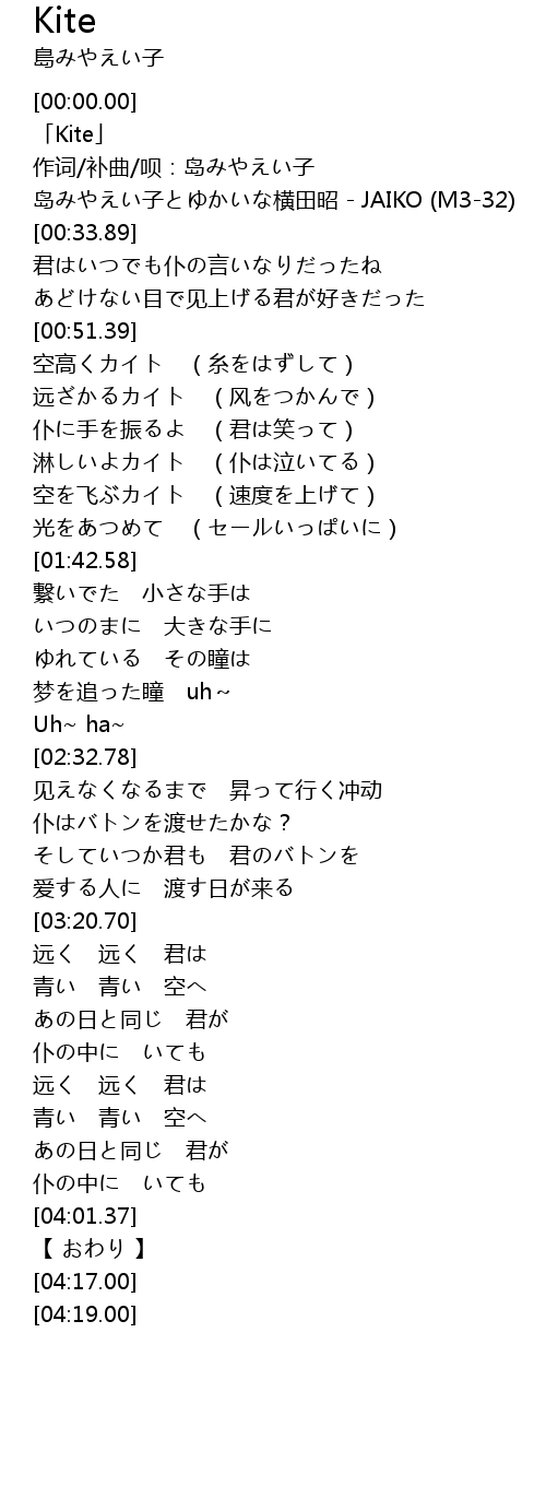 | [00:17.22] | 「Kite」 |