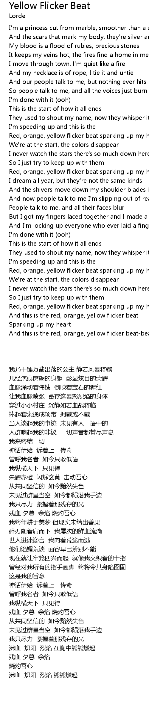 Red, orange, yellow flicker beat sparking up my heart |