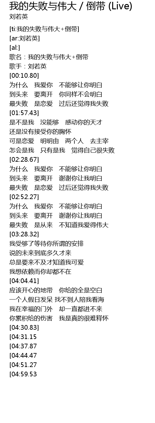 | [00:00.36] | 歌名:我的失败与伟大+倒带 |