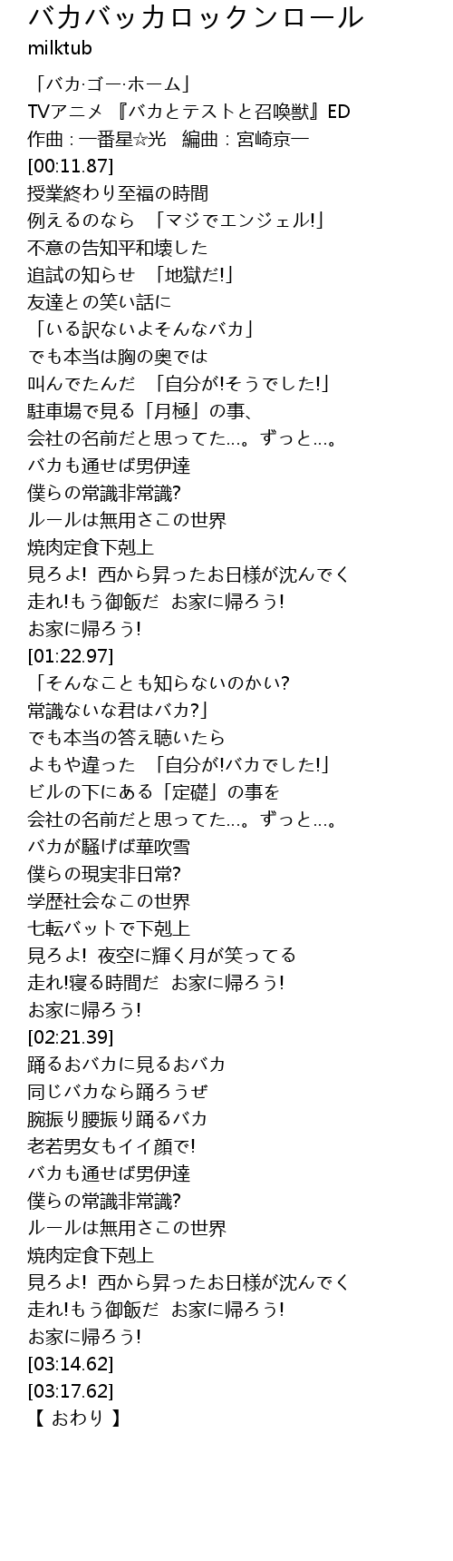 | [00:03.87] | TVアニメ 『バカとテストと召喚獣』ED |