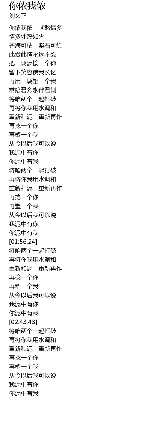 | [00:20.06] | 你侬我侬 忒煞情多 |