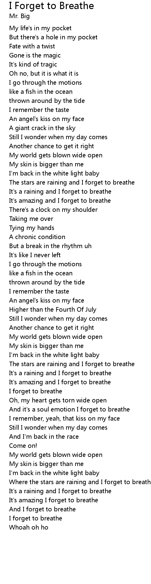 I forget to breathe |