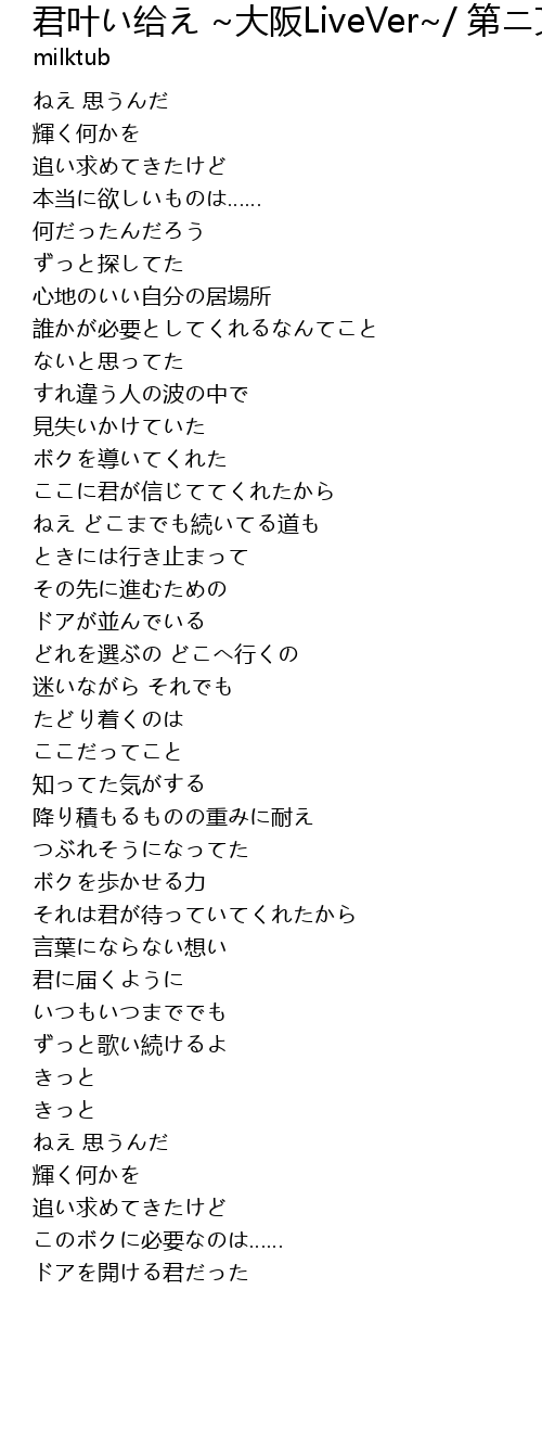 | Song | 君叶い给え ~大阪LiveVer~/ 第ニ文芸部 |