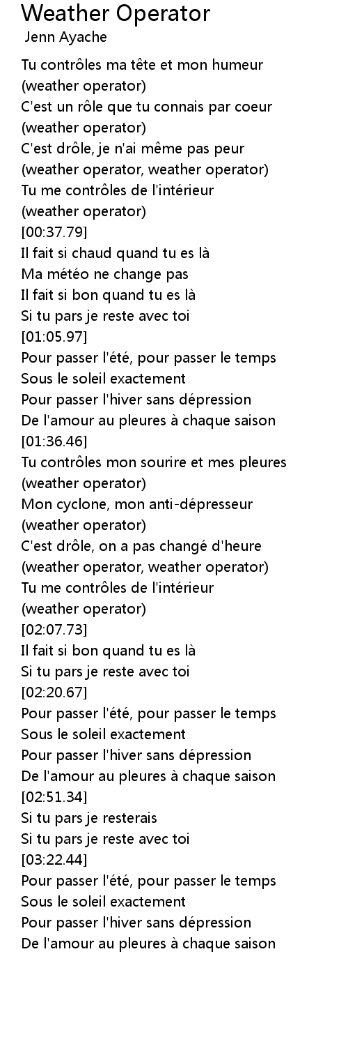 | [01:46.07] | Mon cyclone, mon anti-dépresseur |