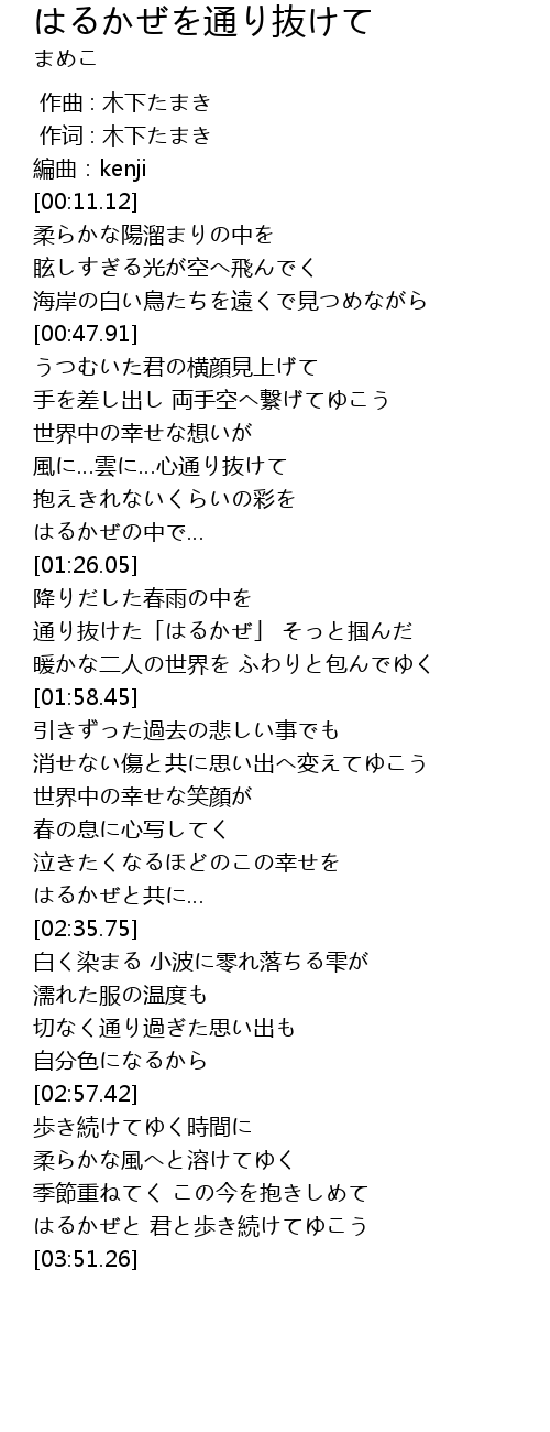 | [03:41.10] | はるかぜと 君と歩き続けてゆこう |