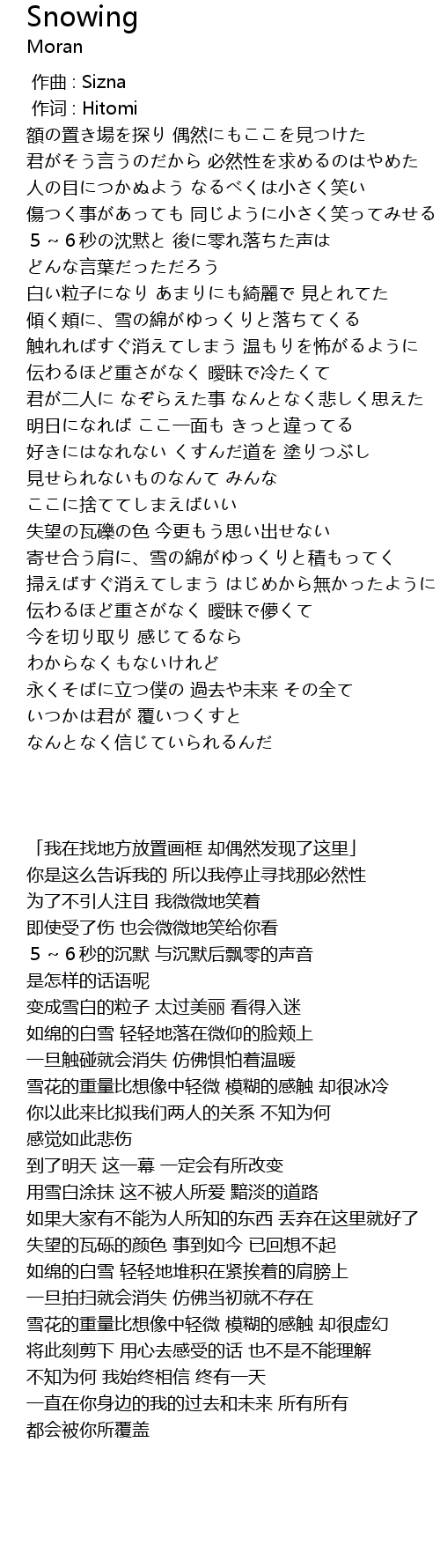 | [02:11.06] | 傾く頬に、雪の綿がゆっくりと落ちてくる |
