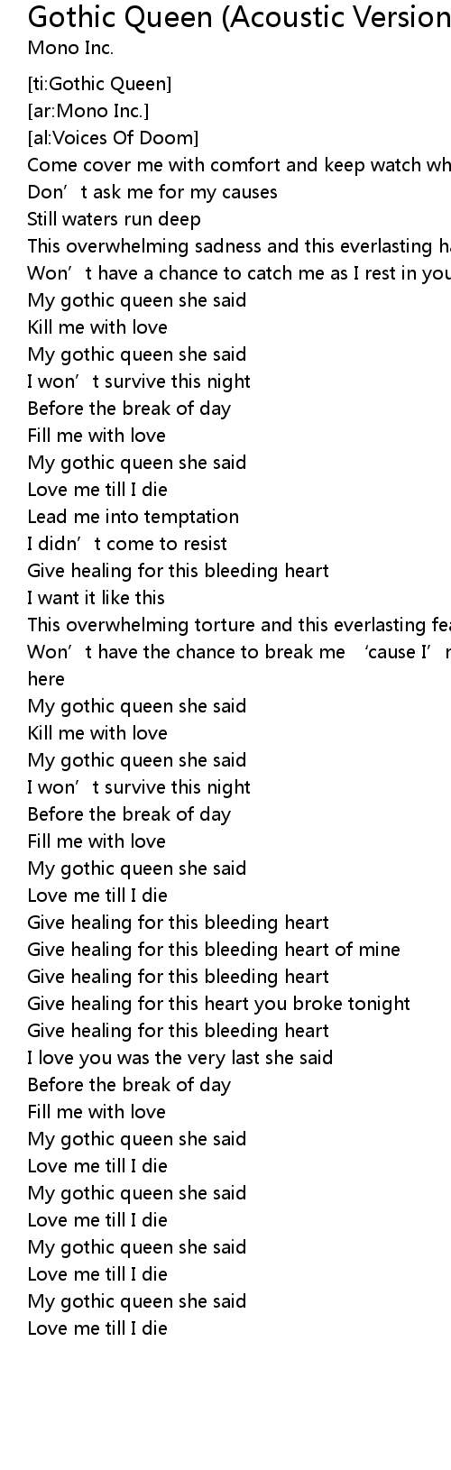 | [01:47.97] | This overwhelming torture and this everlasting fear |