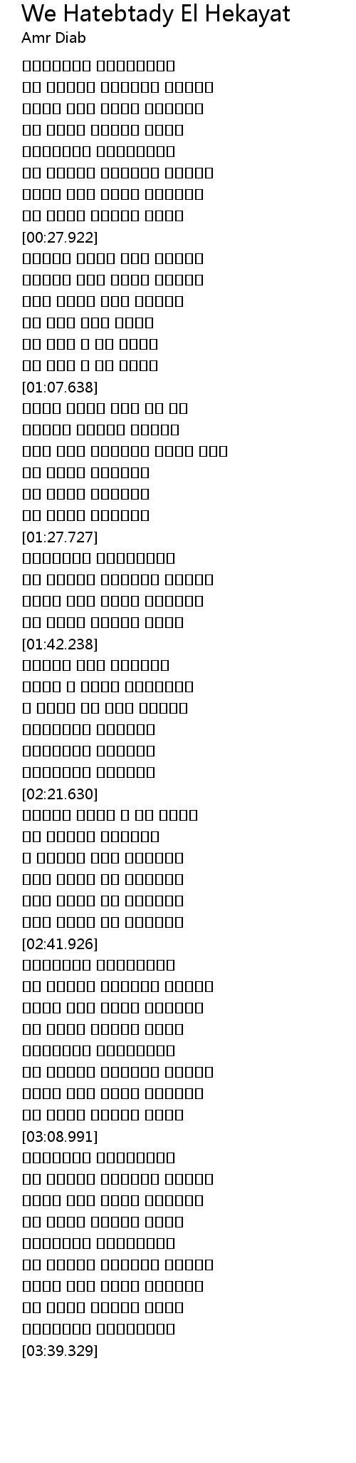 We Hatebtady El Hekayat Lyrics