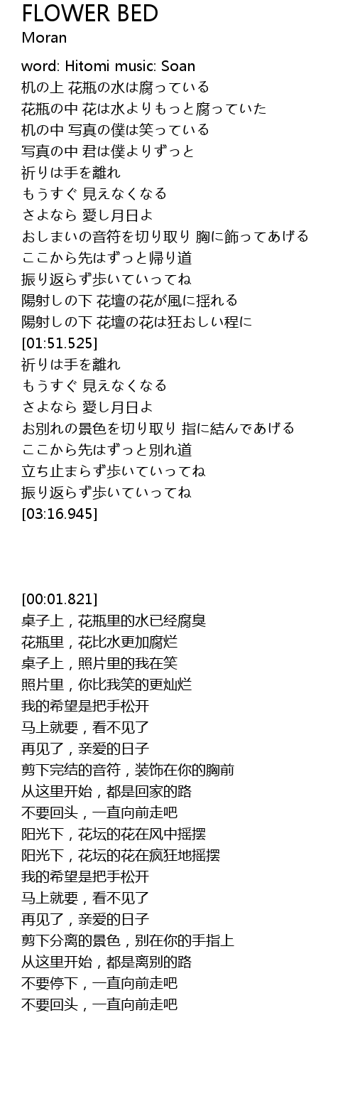 | [01:35.821] | 陽射しの下 花壇の花が風に揺れる |