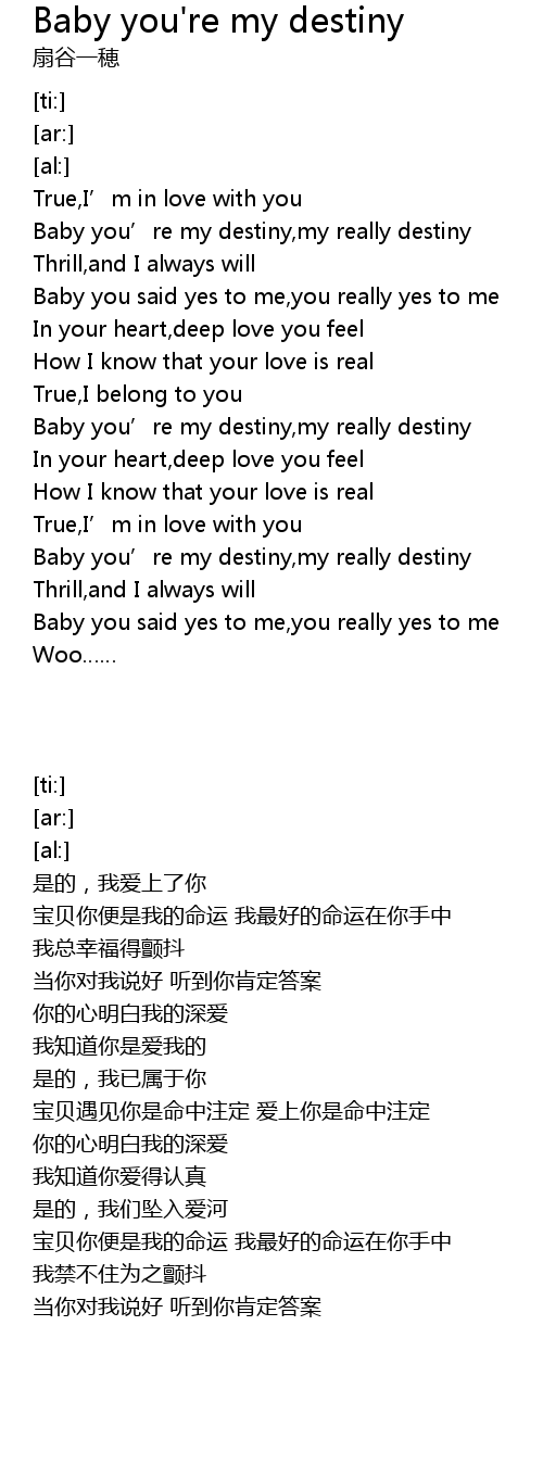 | [00:51.95] | Baby you’re my destiny,my really destiny |