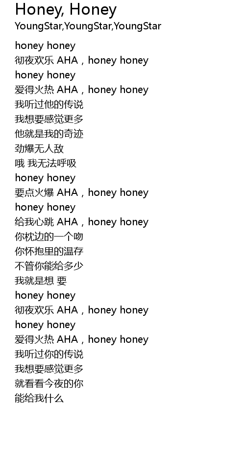 | gěi wǒ xīn tiào AHA, honey honey | |